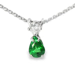 This exquisite 14K White Gold Pendant Necklace showcases timeless elegance with a natural pear-shaped emerald and a brilliant round diamond. The pendant’s sleek design highlights the beauty of the gemstones, making it a standout piece for any jewelry collection. The necklace measures 18 inches long, while the pendant itself is almost 0.50 of an inch long. Weighing 4.4 grams, this piece offers a perfect balance of luxury and everyday wearability.