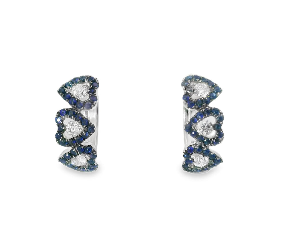 These Fabulous 18K White Gold Sapphire Diamond Heart Huggie Earrings are a perfect blend of sophistication and elegance. Featuring numerous natural round sapphires totaling 0.48 carats and sparkling diamonds totaling...
