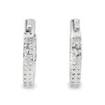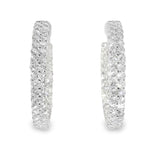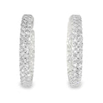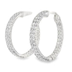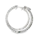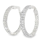 Gorgeous 14K White Gold Diamond Inside-Outside Hoop Earrings. This pair features numerous brilliant round diamonds. Total diamond weight is 2.85 carats. Each earring measures 1 inch in diameter and 1/8 of an inch thick. The pair weighs 7.5 grams.