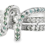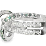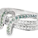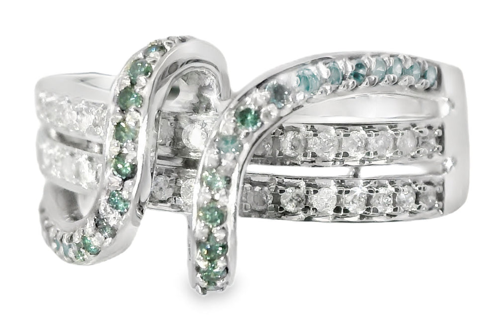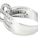 Add a touch of sophistication to your collection with this 14K White Gold Blue and White Diamond Ring. Featuring 32 brilliant round blue diamonds and 34 brilliant round white diamonds, this exquisite piece offers a perfect balance of bold color and sparkling brilliance. The total diamond weight of 0.45 carats, set in sleek 14K white gold, creates a luxurious and timeless design that will elevate any occasion.