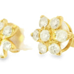 Elevate your style with these Fabulous Estate 14K Yellow Gold Diamond Floral Stud Earrings. Each earring is a dazzling floral design featuring 7 brilliant round diamonds, creating a timeless and elegant aesthetic.