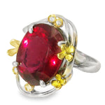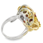 This ring is a true statement piece, combining the rich, deep hue of the rubellite with the elegance of 18K yellow gold and platinum. The substantial size and vibrant color make it a standout accessory for any occasion. Whether you're looking to add a unique piece to your collection or seeking a special gift, this ring is sure to impress.