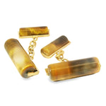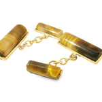 These striking 14K Yellow Gold Tiger Eye Cufflinks are a bold and sophisticated accessory, perfect for adding a touch of luxury and natural beauty to any formal or business attire. Each cufflink features two natural pieces of tiger eye connected by a fine 14K gold chain, offering both elegance and a unique design. With their rich, golden-brown hues and polished finish, these cufflinks are the ideal choice for anyone seeking an eye-catching yet refined piece of jewelry.