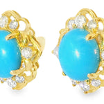 Add a touch of timeless elegance to your collection with these 18K White Gold Turquoise and Diamond Earrings. Each piece showcases a stunning natural turquoise, complemented by 8 brilliant round diamonds that enhance its vibrant blue hue. Designed with a sophisticated and classic aesthetic, these earrings are perfect for both everyday luxury and special occasions.