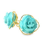 These 18K Yellow Gold Turquoise Flower Carved Earrings are the perfect blend of elegance and color. The rich turquoise gemstones, with their beautiful floral carving, add a unique and eye-catching element to any look. Whether you're dressing up for a special occasion or adding a bold accent to your everyday style, these earrings are sure to impress.