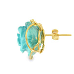 Make a statement of timeless elegance and color with these exquisite 18K Yellow Gold Turquoise Flower Carved Earrings—a vibrant addition to your jewelry collection.