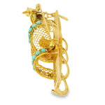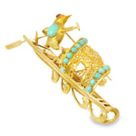 This stunning Estate 14K Yellow Gold Turquoise Ruby Lovebirds Brooch is a true work of art, blending vibrant turquoise and rubies with exquisite craftsmanship. Featuring two lovebirds, intricately designed and...