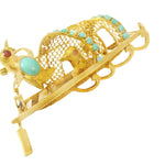 • Design: A charming lovebirds design, with the vibrant turquoise and ruby gemstones delicately arranged to form the birds, making this a whimsical yet elegant accessory.