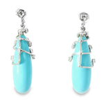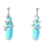 Elevate your jewelry collection with this exquisite pair of pear-shaped turquoise and diamond earrings. These stunning earrings feature two elegantly cut pear-shaped turquoise gemstones, surrounded by brilliant round diamonds that...