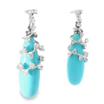 Elevate your jewelry collection with this exquisite pair of pear-shaped turquoise and diamond earrings. These stunning earrings feature two elegantly cut pear-shaped turquoise gemstones, surrounded by brilliant round diamonds that add the perfect touch of sparkle. The combination of vibrant turquoise and dazzling diamonds creates a timeless, sophisticated look. Perfect for both special occasions and everyday wear, these earrings bring a bold yet elegant statement to any outfit.