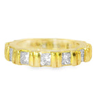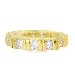 This stunning 18K yellow gold diamond eternity wedding band is the perfect symbol of everlasting love and commitment. The band features numerous princess-cut diamonds set all along its circumference, offering...
