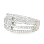 Gorgeous Estate 14K White Gold Engagement Diamond Ring. This unique piece features numerous brilliant round and baguette diamonds totaling 1.17 carats. The band measures 3/8 of an inch wide. It...