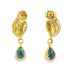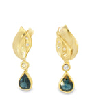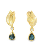 These Estate 14K Yellow Gold Drop Earrings with Sapphire and Diamonds are the perfect blend of vibrant color and classic elegance. The pear-shaped sapphires exude rich color, while the diamonds provide a sparkling contrast, making these earrings a true statement piece. Whether for a special occasion or as a thoughtful gift, these earrings are sure to impress with their timeless beauty and luxurious design.