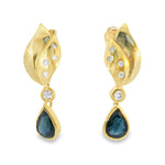 Make a sophisticated statement with these Estate 14K Yellow Gold Drop Earrings with Sapphire and Diamonds—a perfect addition to any fine jewelry collection.