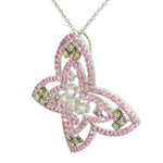 This exquisite 14K Pink Sapphire and Champagne Diamond Butterfly Pendant is a true masterpiece of artistry and elegance. Designed to captivate, this pendant features a stunning butterfly adorned with a vibrant array of 125 pink sapphires, 12 champagne diamonds, and 5 white brilliant diamonds. The perfect blend of color and sparkle, it adds a touch of luxury and whimsy to any outfit.